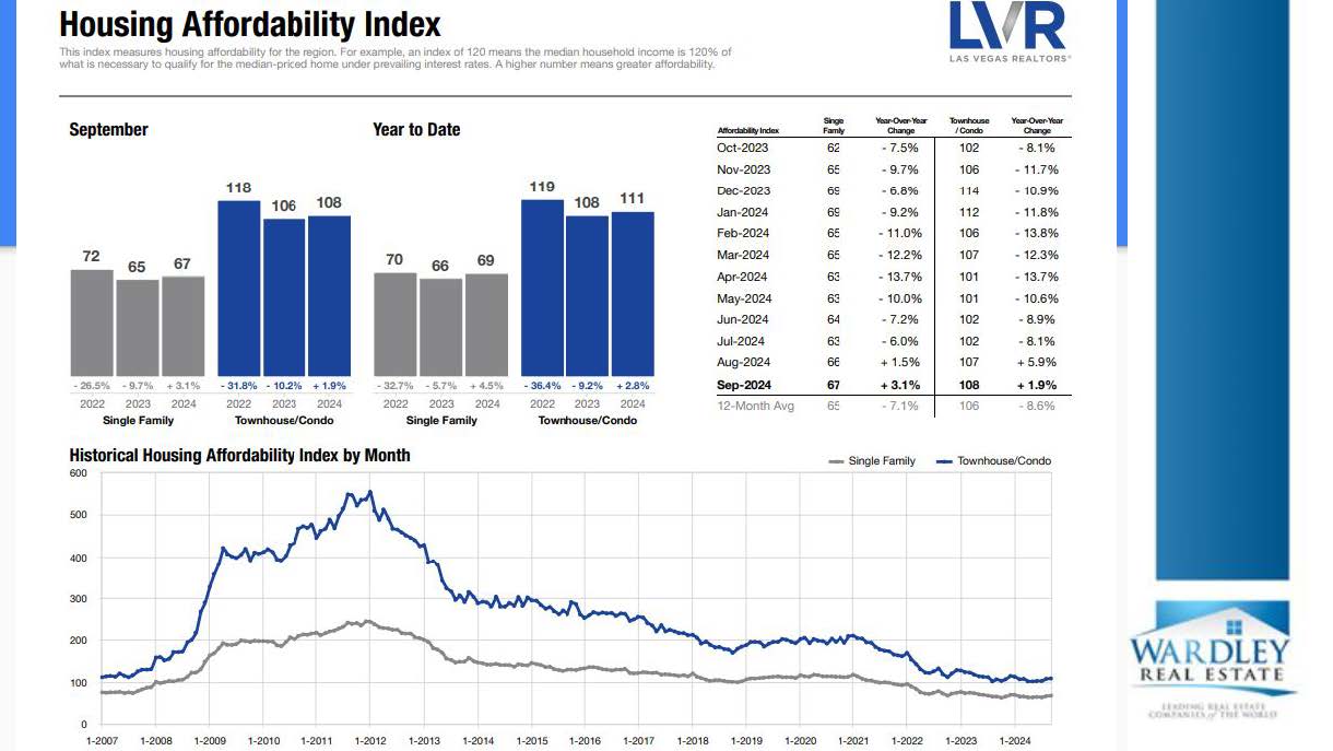 We also saw a rise in home affordability, with it being over 3% better this year despite prices being higher than the same time last year, this is due mostly to the interest rates coming down into the mid-5's. While the expectations are that rates will continue to lower, it's expected that it will be incremental and most experts expect the largest drops are behind us.